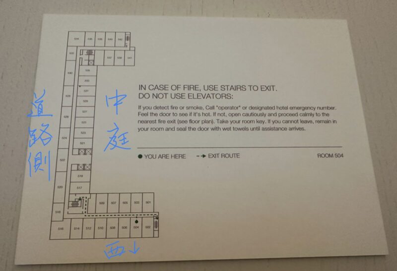 もっと良い客室だと北側が見えたり、中庭ビューになるようです。