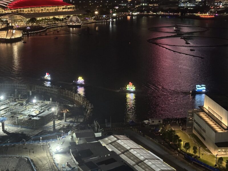 また、建国記念日だけでなく6月中旬から毎週土曜日にほぼフルのリハーサルがあるので、この日に合わせてマリーナベイビューのホテルに泊まれば涼しい部屋から楽しめます。