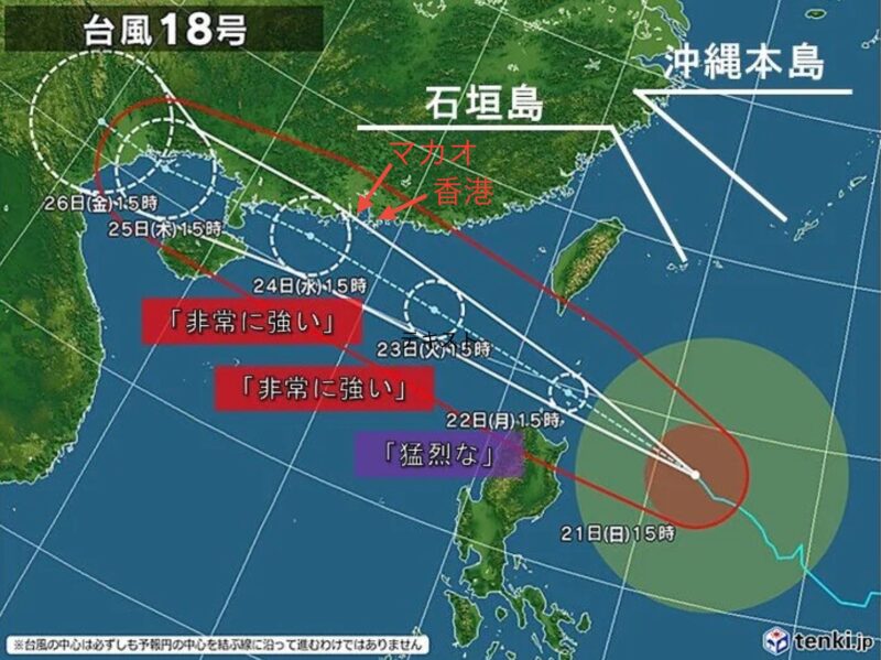 この時期は台風が多く発生するため台風情報はこまめにチェックしておりましたが、出発3日前の9月18日に台風18号(ラガサ)がフィリピン東沖で発生、その後の進路予想によると香港・マカオに9月24日に接近するとの情報。