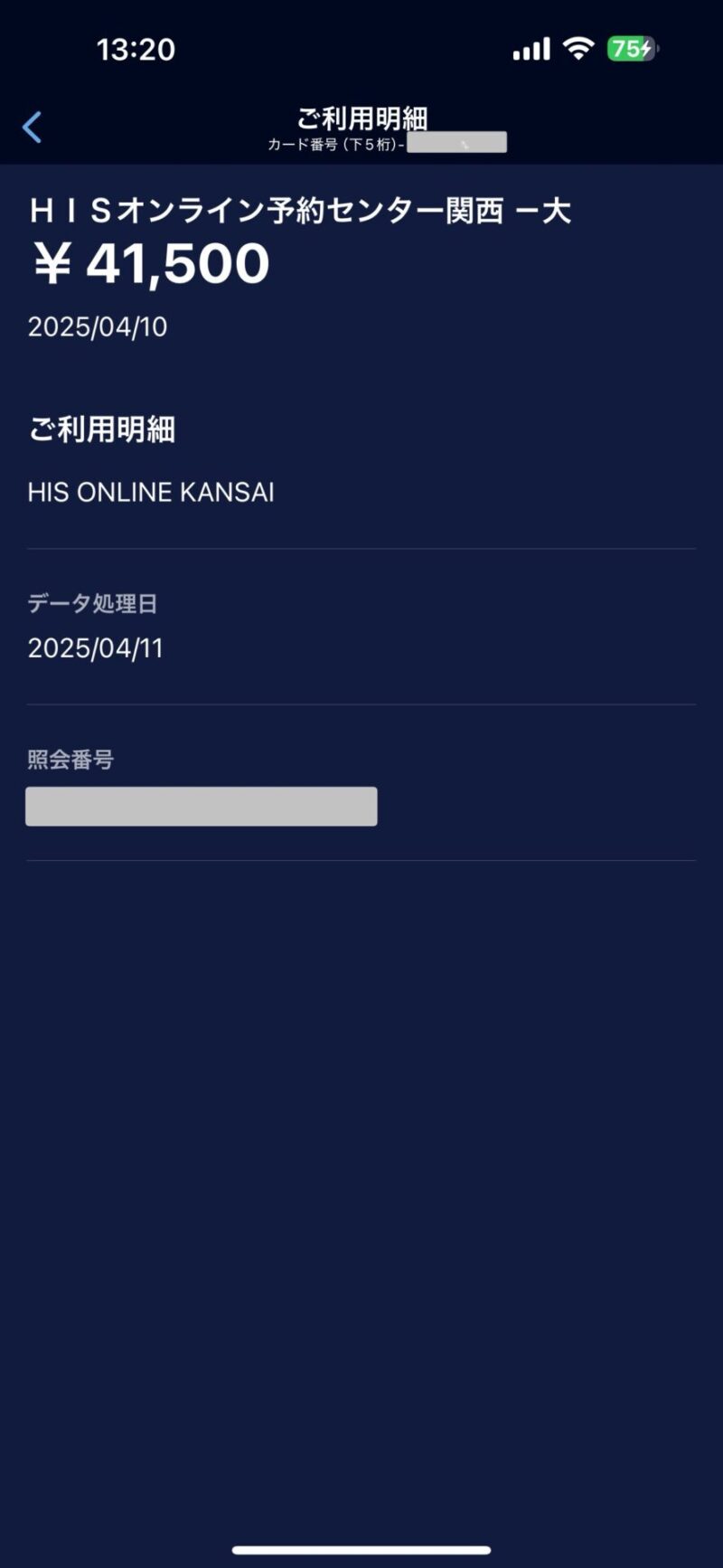 また、クレカで支払いをした場合はカード会社から請求が上がってきたら明細をスクショしておきます。(クレカ払いの場合は請求明細の為替レートに基づいて算出された金額が保険金額となります)